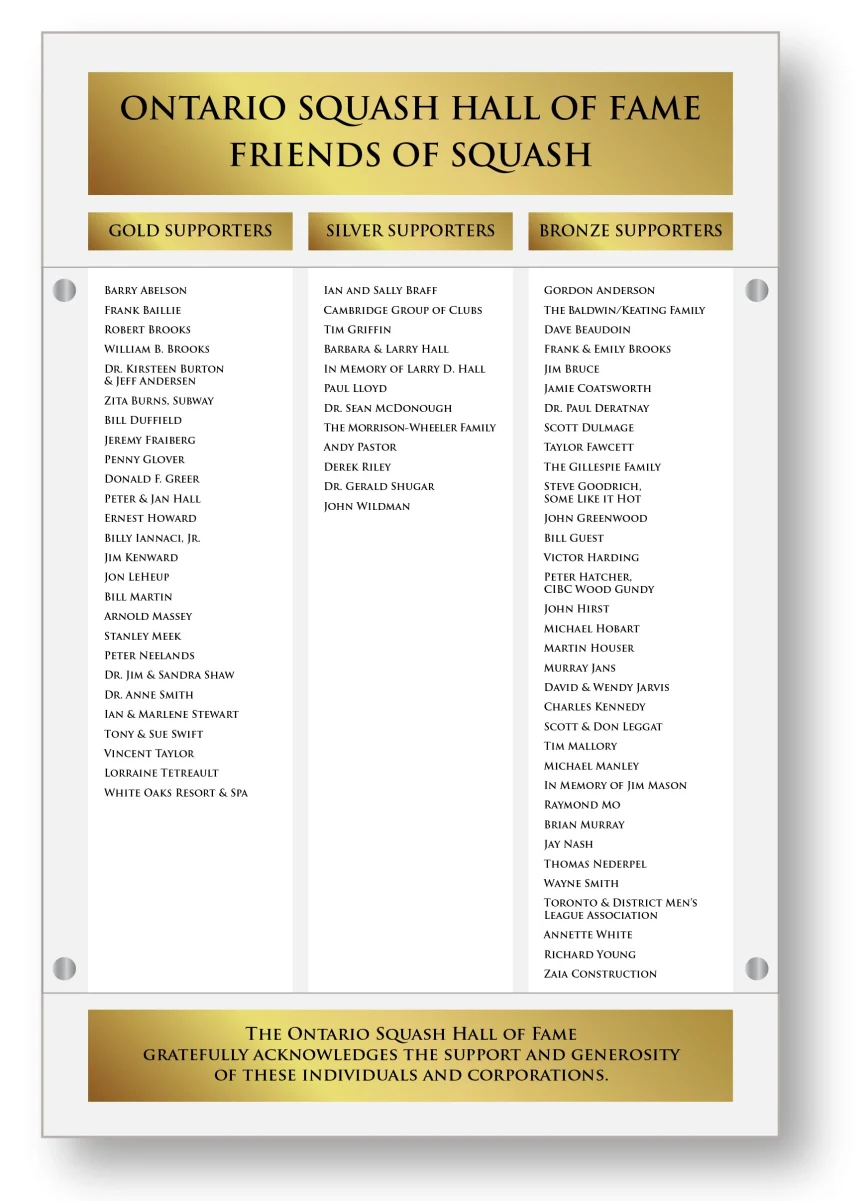 Project Name – Ontario Squash Hall of Fame