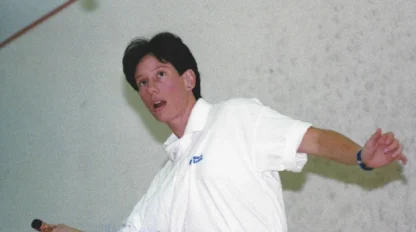 She reached number 3 in the world in 1982, then in 1996 played her way back to number 6 internationally. She won Pan American Gold medals in singles and team in 1995 a mere 20 weeks after rupturing her Achilles tendon. She also added a bronze medal for a third place finish in the World Mixed Doubles in 1997with her partner, Jamie Crombie.
