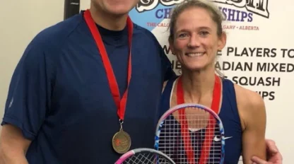Nationally, she won 35+ and 45+ singles titles, eight Women’s Open Doubles titles, nine Canadian Mixed Open Doubles titles, six Century Doubles titles, and first place in both 1998 and 2002 Canadian Women’s Team Championships. She was a member of the Nation Women’s Team between 96-2000.